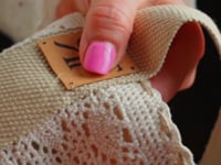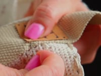 Con paciencia y precisión, unimos la tela a una base de alpargata. Este paso es clave: es lo que da forma, fuerza y autenticidad al bolso.